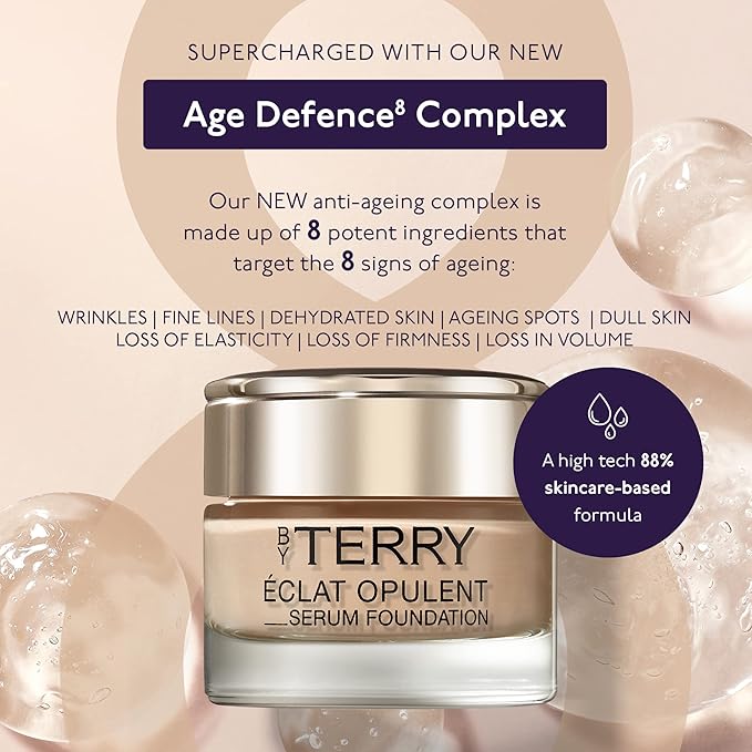 - BOOST RADIANCE: This age-defense serum foundation is highly concentrated with skincare benefits, acting on 8 signs of aging: wrinkles, fine lines, firmness, volume, elasticity, aging spots, lack of hydration, and radiance. Buildable coverage with a second skin texture.