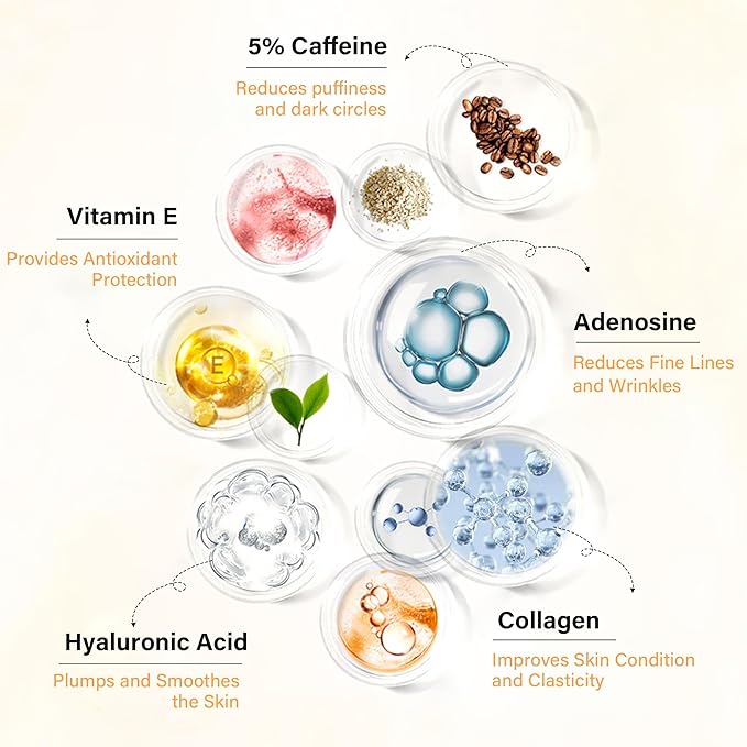 - Gentle on Skin yet Effective: Suitable for All Skin Types: Our eye serum is suitable for all skin types, including sensitive skin. It is from Safely selected materials, making it safe and gentle to use., but if you're sensitive to caffeine, consult a dermatologist before use.