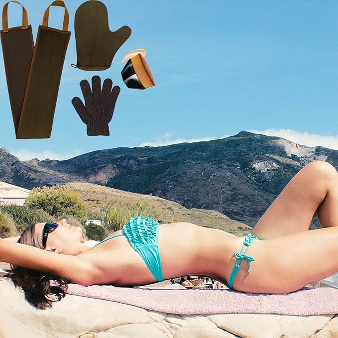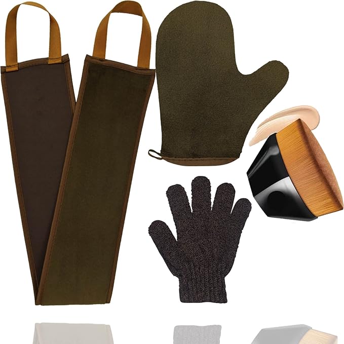 - 4 in 1 Self Tanning Mitt Kit: Include 1 Tanning Glove, 1 Tanning lotion Applicator, 1 Face Tanner Brush, 1 Exfoliate Mitt. Use this kit to apply tanning lotion to every part of body easily and smoothly