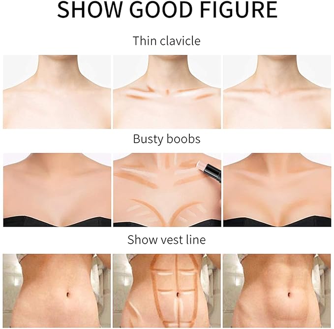 - 【Multifunctional】With this Cream Contour Stick, you can not only Create a natural 3D makeup look, you can also applied it to your body to create or highlight abs or clavicle. Waterproof long-lasting effect.