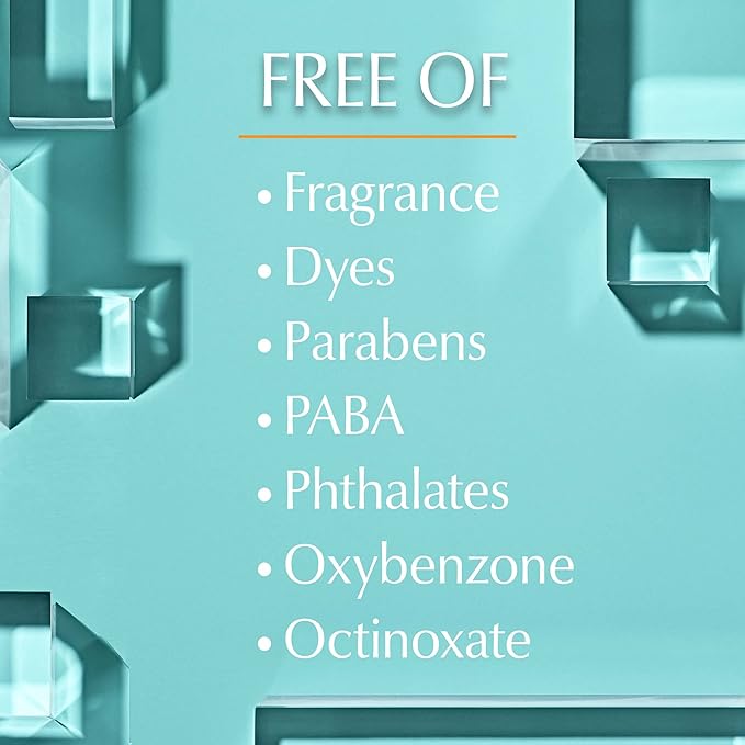 - Free Of: This Eucerin sunscreen SPF 50 lotion is hypoallergenic, and free of fragrance, oil, dyes, parabens, PABA, phthalates, oxybenzone and octinoxate