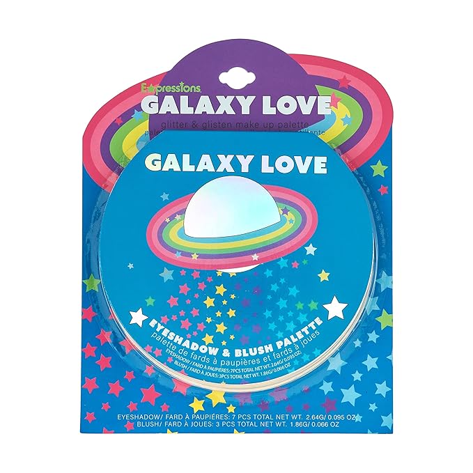 - Makeup Mirror - The makeup palette includes a small mirror inside the compact so you can do your makeup wherever you are; The GALAXY LOVE glitter eyeshadow is decorated with colorful stars and planets, and features a star-shaped beauty mirror