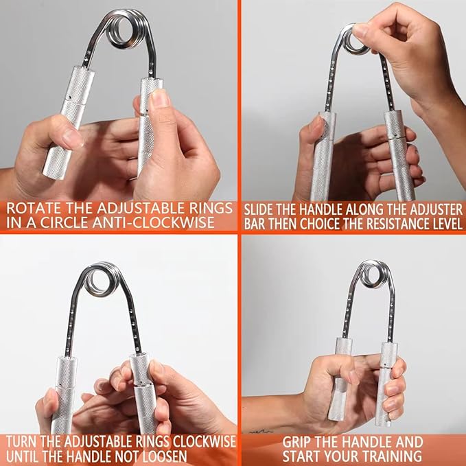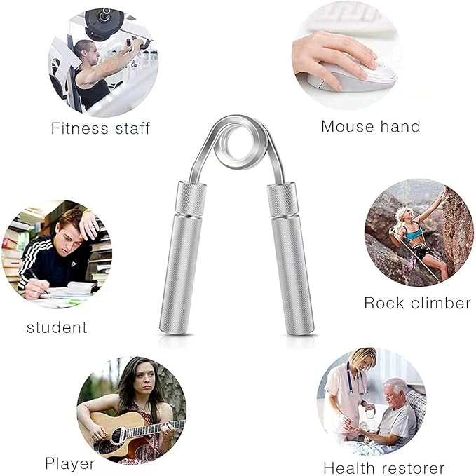 - 【Durable and Sturdy】Ergonomic aluminium handles with diamond design for a non-slip grip, is durable and not easy to rust. Premium steel spring makes the forearm grippers construction more firm and sturdy. In addition, our hand grip exerciser strengthener comes with a pair of NBR Protective gloves, your training will become more comfortable. It’s perfect for musician, athlete, rock climber, and office worker.