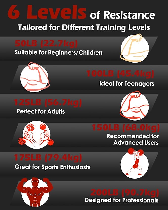 - 6 Packs Grip Strength Trainers: Hozzen hand grip strengthener offers 6 levels of resistance (50, 100, 125, 150, 175, 200 LBS) to meet the training needs of different groups. Its ergonomic and ambidextrous design enables efficient finger, hand, wrist, and forearm muscle training for improved grip strength. And we offer special 125LB and 175LB for users to achieve better training results according to their own conditions