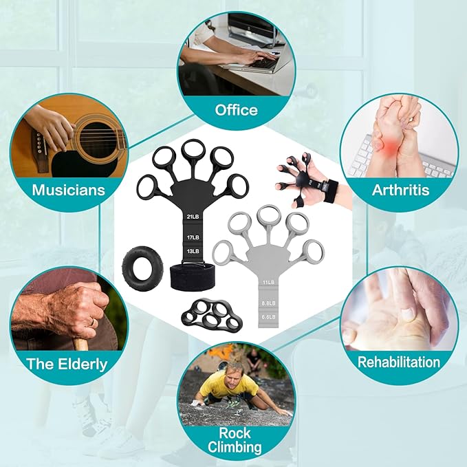- Perfect Gift - The finger stretcher can improve the finger strength of athletes (rock climbing, fitness, tennis, baseball, boxing) and musicians (guitar, bass, pianist, and violinist) and daily housework (driving, typing, writing, working, etc.). The perfect gift is given for anyone.