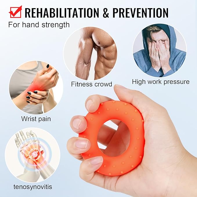 - 【Hand Therapy and Rehabilitation Equipment】:Ideal for individuals recovering from hand or wrist injuries, our hand grips can aid in rehabilitation and enhance dexterity.It's effective for reducing stiffness and pain associated with conditions such as rheumatoid arthritis, stroke rehab, carpal tunnel, tenos ynovitis, fractured or broken wrist, tendon surgery, and tennis elbow.