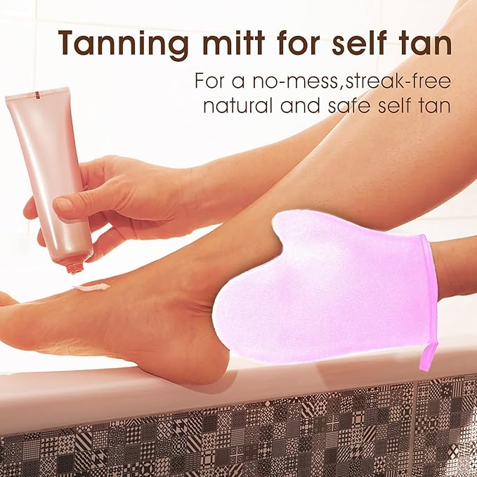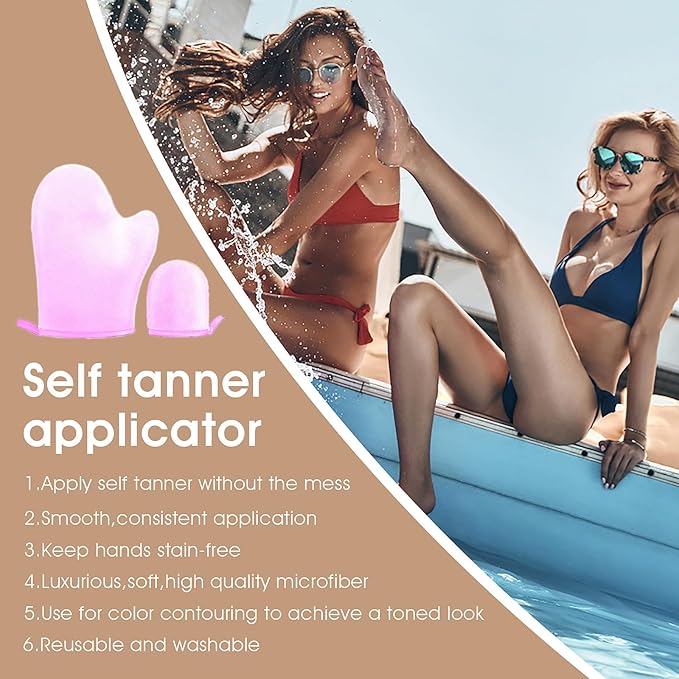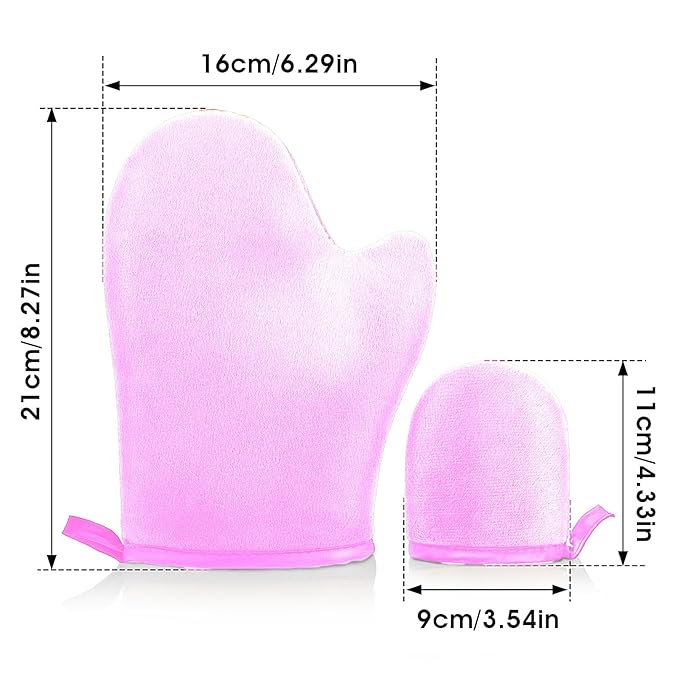 - 【Body Self-Tanners】You will receive 2 pcs pink tanning gloves for men and women to get a fast sunless fake tan effect. Exfoliating mitt prevents your palms from tanning during application and make no stain in bathroom floors, counter tops
