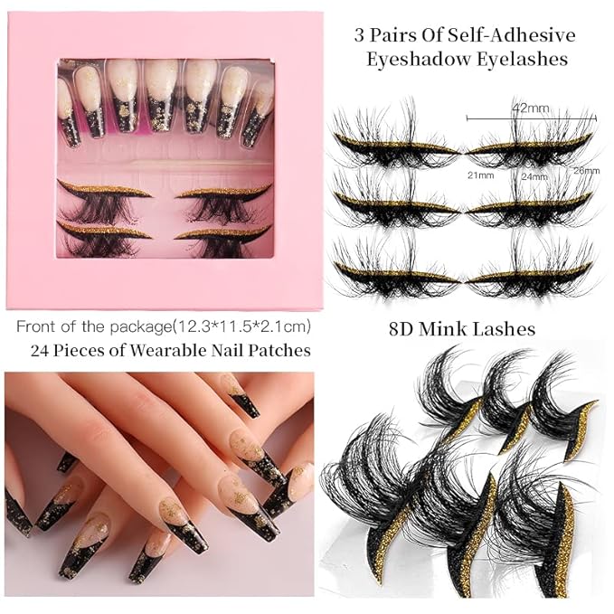 - 1. High quality eyelashes: high quality artificial mink eyelashes and very soft cotton tape, with no chemical residue. It is composed of nail enhancement piece, eyeliner and eyelash, which is beautiful without troubles and more convenient to use