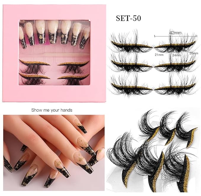 - 1. High quality eyelashes: high quality artificial mink eyelashes and very soft cotton tape, with no chemical residue. It is composed of nail enhancement piece, eyeliner and eyelash, which is beautiful without troubles and more convenient to use