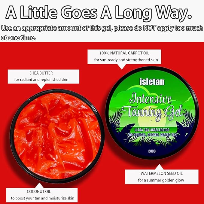 - Everything your skin needs is in one jar - 100% natural carrot oil in this natural sun tan accelerator for sun-ready and strengthened skin, organic coconut oil to boost your tan, sweet almond oil for a summer golden glow and cacao butter for radiant and replenished skin. Tattoo & Color Fade Protector Prolongs the life and radiance of your tattoos and tanning results. Premium isletan combination of this carrot sun tanning cream gel became popular for ultra dark tan lovers too!