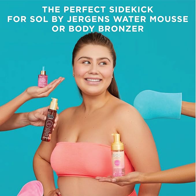 - THE PERFECT COMPLEMENT TO SOL SELF-TANNERS - Use with SOL by Jergens sunless tanning products for an easy, even, mess-free tan that works with your skin tone to give you natural-looking color.