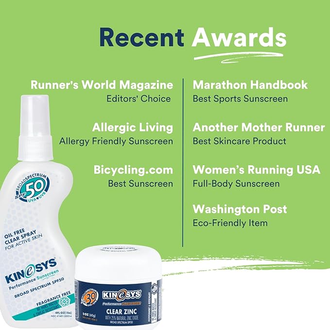 KINeSYS Fragrance Free Clear Spray Sunscreen for sensitive skin, SPF 30, Hypoallergenic, Broad Spectrum UVA/UVB protection for Face & Body, PABA and Oxybenzone FREE, 700+ Sprays, 4 Fl Oz/120 mL