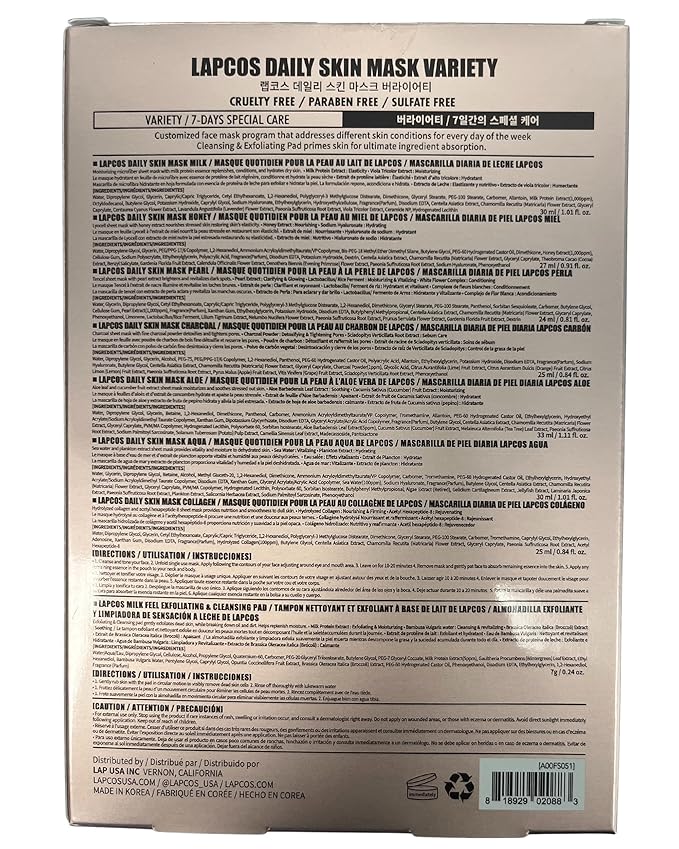 - 7 DAILY SHEET MASKS: This sheet mask set includes 1 of eack Daily Mask: Collagen, Milk, Honey, Aqua, Aloe, Pearl, & Charcoal to clarify your complexion, nourish dryness, tighten, revitalize & improve skin texture.