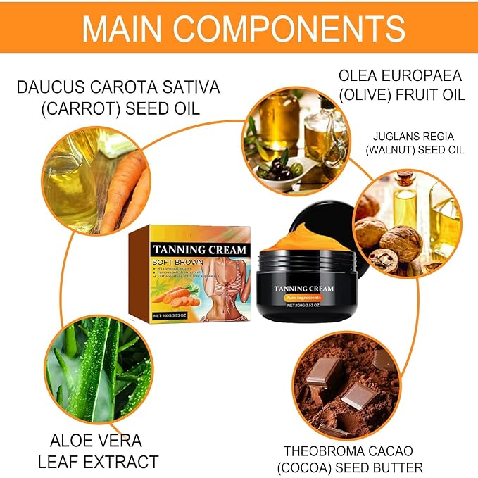 - EFFICIENT ABSORPTION:The tanning cream is quickly absorbed into the skin, which not only achieves a tanning effect, but also deeply nourishes the skin and prevents dryness and peeling of the skin after sun exposure