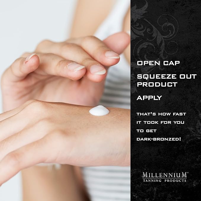 - Offers A Bronze Glow - Millennium Tanning’s dark tanner that works as a bronzer, too