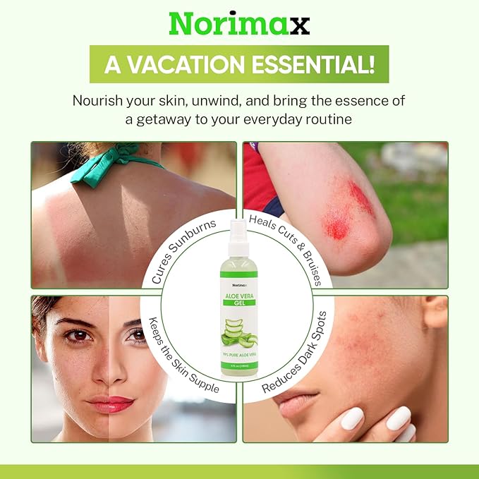 - SOOTHING SUNBURN RELIEF: Relish the soothing power of our Aloe Vera gel for sunburn relief! Feel the calming sensation on irritated skin, getting instant relief by reducing redness and inflammation. With the natural aloe gel’s cool touch, it's the perfect companion for sun-exposed areas, promoting healing and preventing peeling. Embrace nature's remedy for sun-kissed skin—our Aloe Vera gel is your go-to for a refreshing and revitalizing post-sun treat!