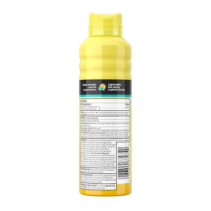 - 6.5-ounce can of water-resistant Neutrogena Beach Defense Sunscreen Spray for body with Broad Spectrum SPF 70 and Helioplex technology for UVA and UVB sun defense