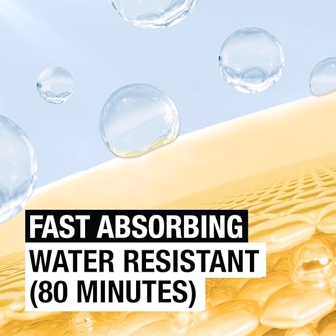 - Sunscreen spray formula is water resistant for up to 80 minutes and is great for use on large areas of skin, especially hard-to-reach places. The lightweight spray formula is easy to apply and absorbs quickly