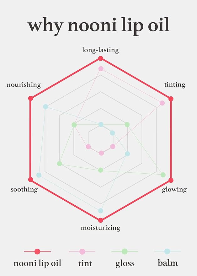 - LONG-LASTING: nooni lip oil provides long-lasting wear, keeping your lips moisturized and vibrant without frequent reapplication. Enjoy a lustrous tint and hydration that lasts all day. Studies show that 52.84% of hydration remained after 24 hrs.
