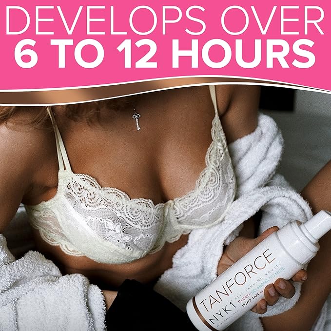 - COST EFFECTIVE - You only use a very small amount with each application. NYK1 Tanforce 250ml contents will last for months and months using every 10-14 days, even for the most devoted self tanning mousse. Say no to sunbeds and yes to a dark Australian skinny dark self tanner. Make your tan look like you've had a million dollar best rated self tanners!