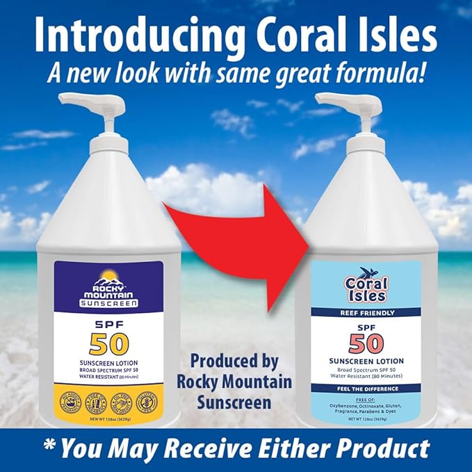 - SPECIAL PRODUCT NOTE: We are gradually transitioning our Rocky Mountain Sunscreen brand to Coral Isles. Our superior formula remains the same, only the packaging is changing. Coral Isles will be a brand that will open new markets for our fantastic sunscreen. You may receive either product label with your order, depending on supply.