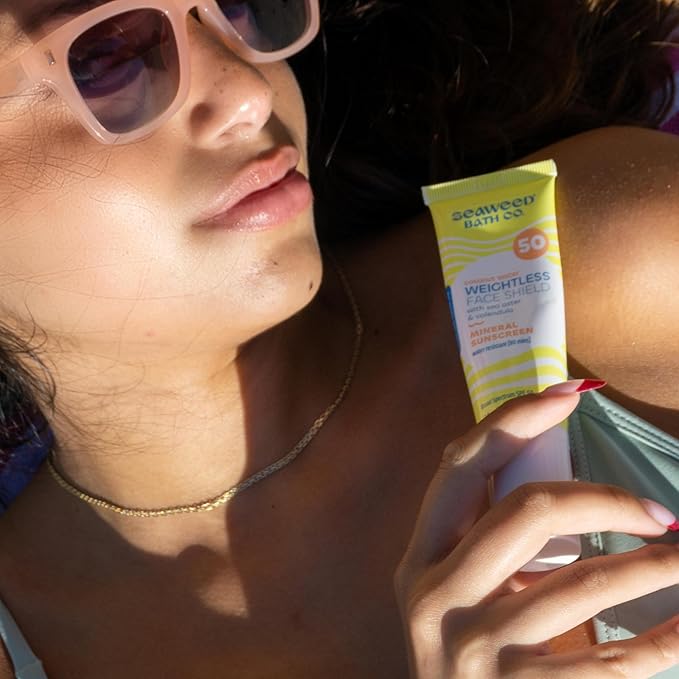 Seaweed Bath Co. Weightless Face Shield Mineral SPF 50 Zinc Oxide Suncreen Facial Serum, 1.7 Oz., Lightweight, Water Resistant Facial Moisturizer