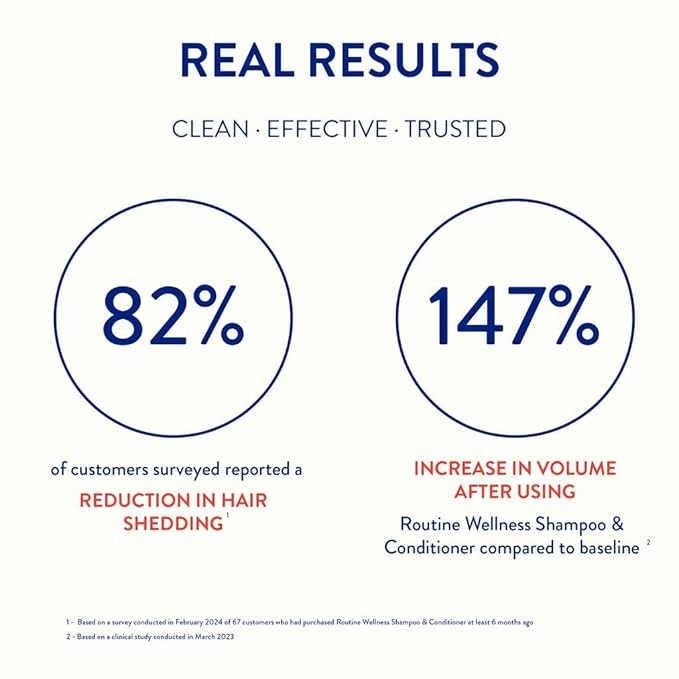 • CLINICAL RESULTS: Enriched with biotin and plant-based extracts and oils, Routine Wellness Shampoo & Conditioner have been clinically shown to strengthen hair by reducing breakage. Our Shampoo & Conditioner are also clinically shown to increase volume and reduce frizz.