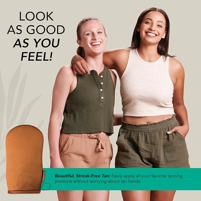 - MACHINE WASHABLE: Durable, long-lasting fabric glides across skin for effortless self-tanning application and beautiful blending, ensuring sexy, sun-kissed skin. Can be machine-washed and air-dried for multiple, no-mess uses.
