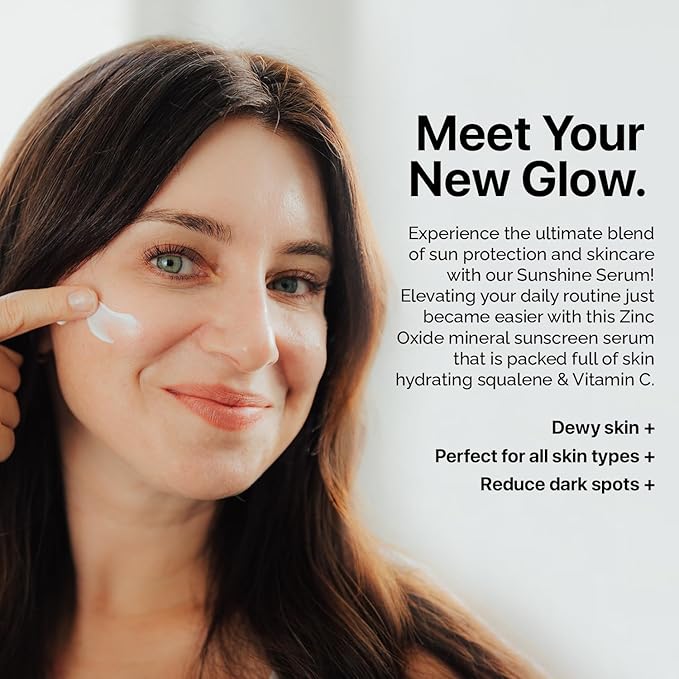 - Product Benefits : Experience the ultimate blend of sun protection and skincare with our Sunshine Serum! Elevating your daily routine just became easier with this Zinc Oxide mineral sunscreen serum that is packed full of skin hydrating squalene and Vitamin C. Sunshine Serum is your one stop shop to radiant and protected skin. Experience the ultimate blend of sun protection and skincare with our Sunshine Serum! Elevating your daily routine just became easier with this Zinc Oxide mineral sunscreen serum that is packed full of skin hydrating sq… See more