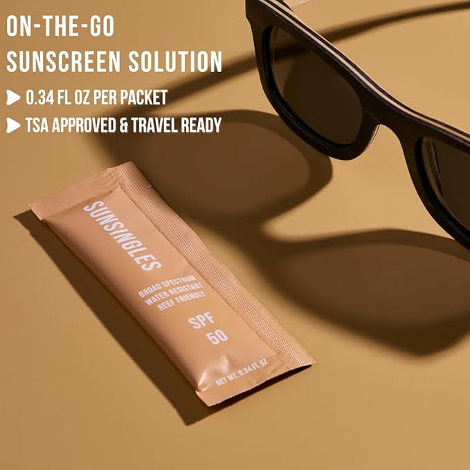 SunsinglesTravel Size Sunscreen, Waterproof/Sweat Proof SPF 50 Protection Fragrance-Free Lotion, PABA-Free Mini Sunscreen For Face, Reef Safe Sunscreen, Single Use Packets 0.34 Fl Oz