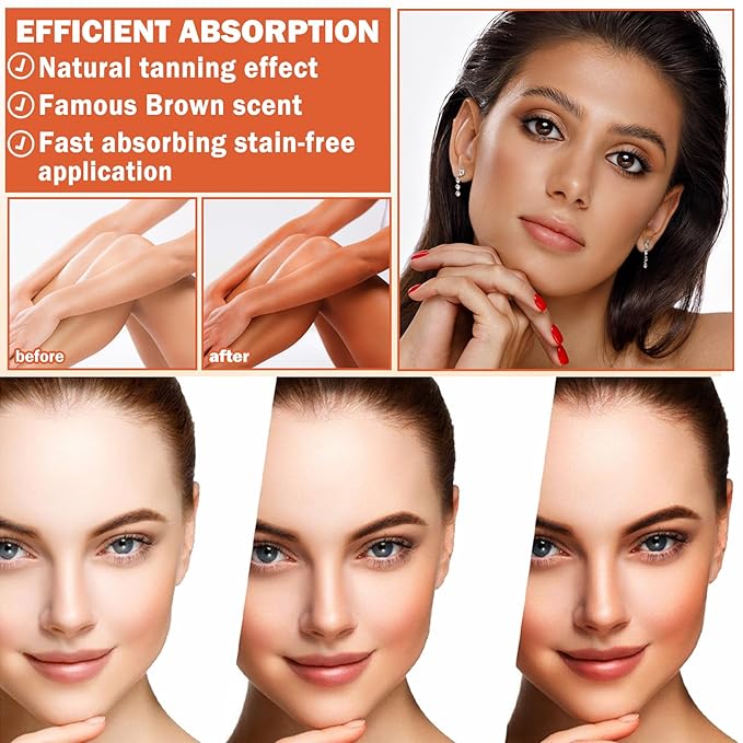 - 【Outdoor Tanning Gel】Use our tanning gel for long-lasting, intense results with just one application, not only giving you radiant, golden skin, but also providing after-sun care to restore smooth skin soft.