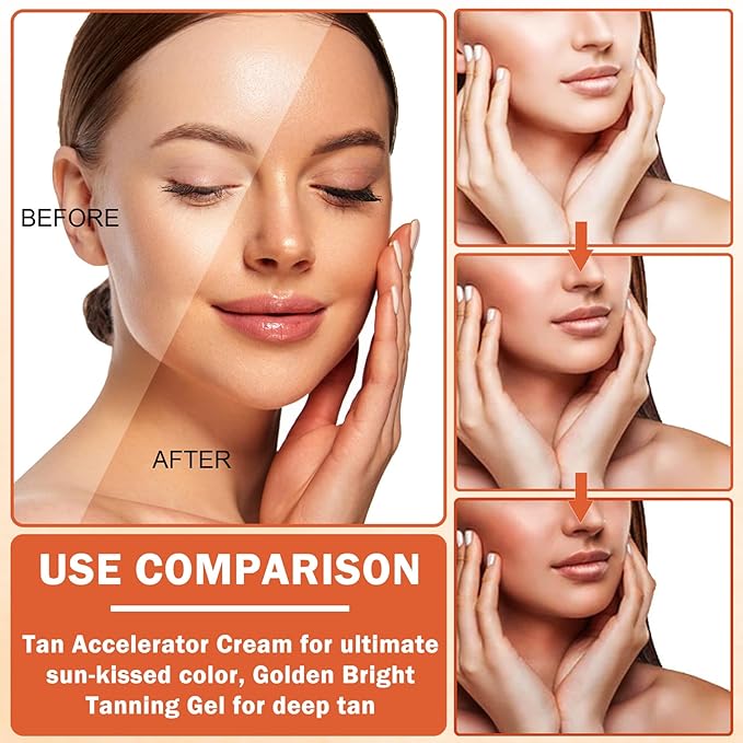 - 【Safe Ingredients】Tanning gel is made of high-quality essential oils, which can be quickly absorbed, allowing the skin to tan better in the sun, showing a healthy and natural bronze complexion. At the same time, it can deeply nourish the skin and prevent dryness and peeling after sun exposure.