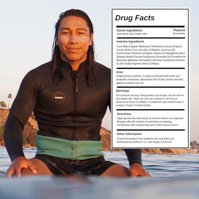- NATURAL MINERAL SUNSCREEN: SurfDurt's only active ingredient is safe for you and the reefs: non-nano zinc oxide. This mineral base includes nourishing antioxidants and food-derived ingredients: coconut, avocado, and jojoba oil for sun protection.