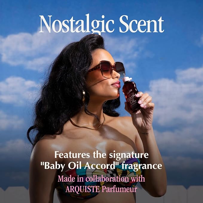 - TRAVEL-FRIENDLY, SPF30 SUNSCREEN OIL - This 3.4oz carry on friendly sunscreen oil reimagines a familiar favorite for safe use in the sun. Featuring high-performing SPF30 actives, a classic nostalgic scent, and naturally derived oils, our sunscreen oil delivers an enviable shine while giving your skin the protection it needs. Baby Oil pays homage to the look, feel, shine and scent of classic baby oils of the past, but does so with an iconic formula you definitely should wear in the sun.