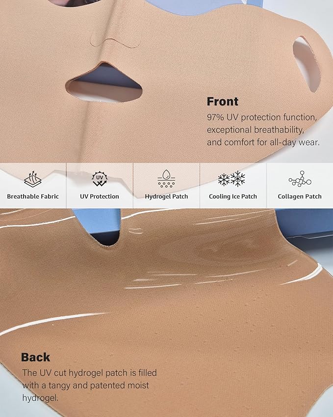 - SHIONLE UV cut sun patch hydrogel is made of certified fabric. Non-detection of 100 harmful ingredients test completed, making it reliable so you can feel safe while using. Completely block around the cheeks and chin with the certificated UV protection fabric from UV block testing.
