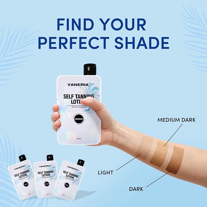 - Beautiful Natural Looking:VANERIA Self Tan Series is natural self-tan body treatment with full skin care benefits. Transforms your skin without any of those nasty streaks or blotches for a beautiful natural looking, golden glow with no orangey tones