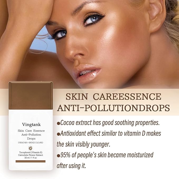 Vingtank 2 Bottles Skin Care Essence Anti-Pollution Drops - Bronzing Serum & Facial Tanning Drops,Fake Tan Peptide Serum,Liquid Bronzer Cream for Aging Skin(2 x 1.05 oz/30 ml)