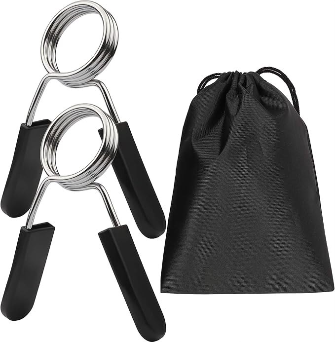 - Ergonomic grip: Each barbell spring clip comes with a smooth, plastic handle and a quick-response, springing mechanism for effortless transition. Easily slip on and off the weight bar with a simple squeeze.