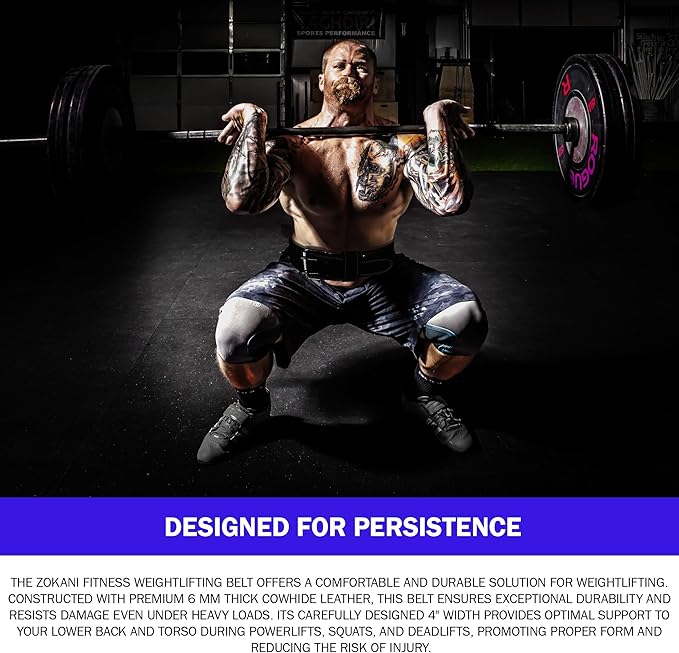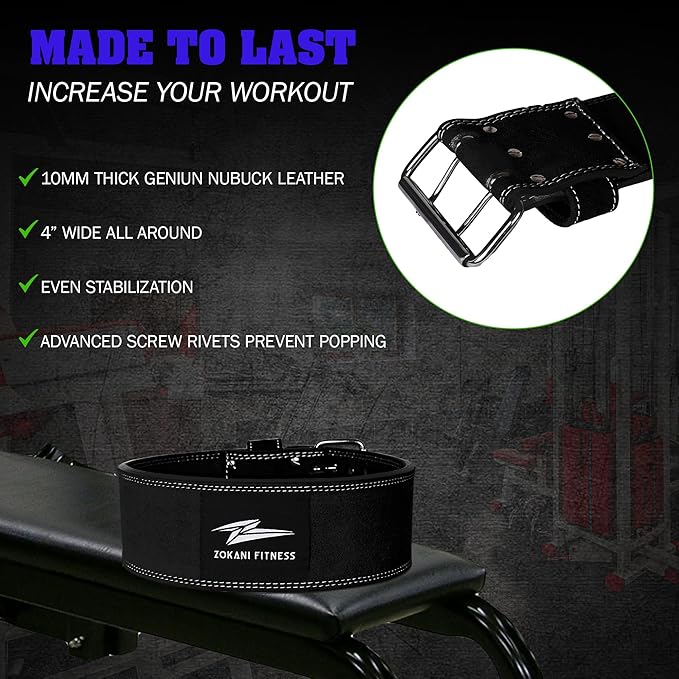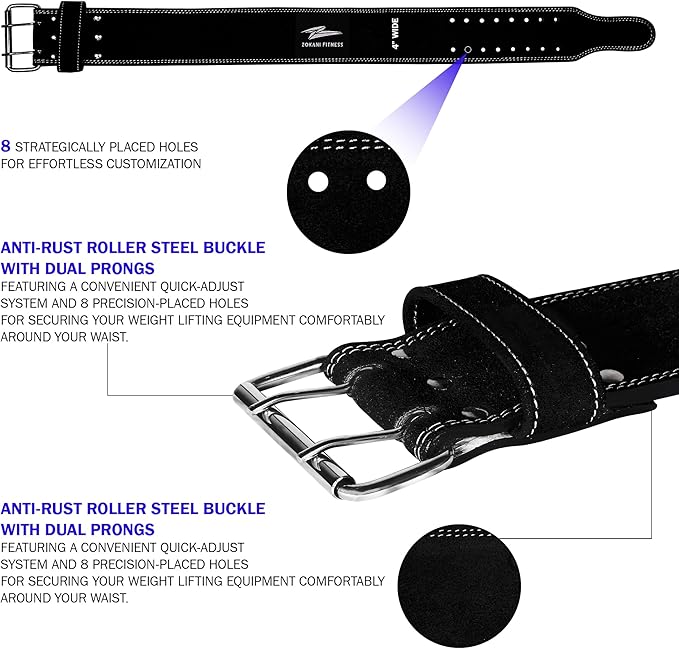 Zokani Thick Leather Weight Lifting Belt - 6MM 4-Inch Wide, 100% Leather 24" - 32", suede